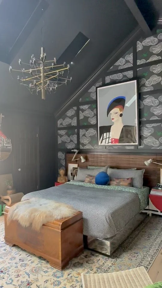 Bedding that says “lived-in rock star” not “hotel turndown service.”