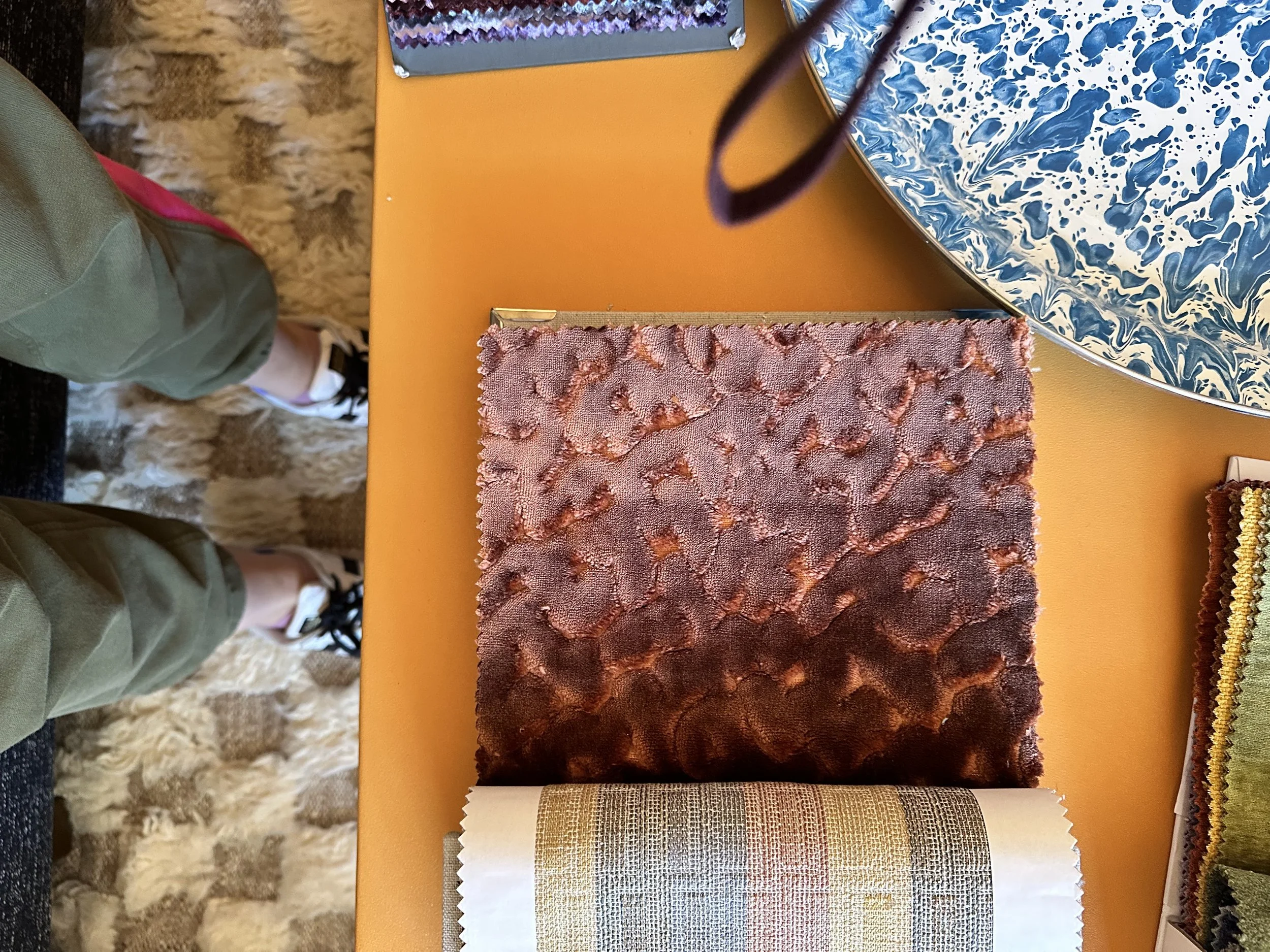 Then I landed on plum... or is it merlot? Not as a “choice,” but as a realization. It was deep, magnetic, quietly confident—like it had nothing to prove. Plum doesn’t fight the mural or the ochre table; it holds them both, gives them context. It’s not pretty, it’s inevitable. The sofa is still blue for now, but once I imagined plum, everything else in the room started shifting. You can feel when the right answer walks in; suddenly, the edit becomes ruthless.