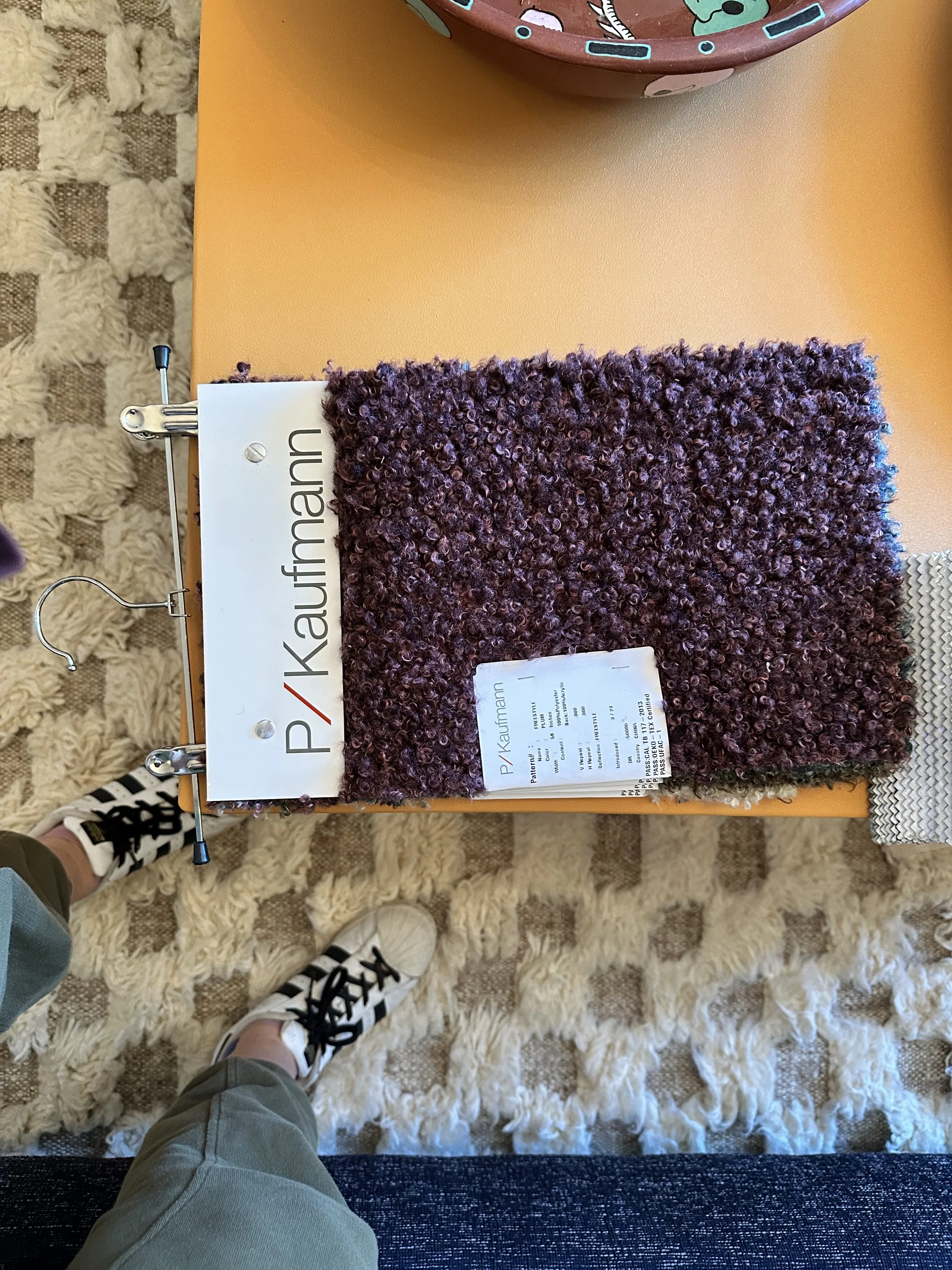 I closed the tab. Then opened it again. Then dragged the image into Google and typed “rug.” That led me down a rabbit hole to a small weaving studio in Bulgaria—no marketing team, no fancy website, just photographs that looked like proof of life. They make a version with the same graphic energy but in warm café-au-lait browns instead of black and white. About $130 per square foot, which comes out to around $900 for my size.